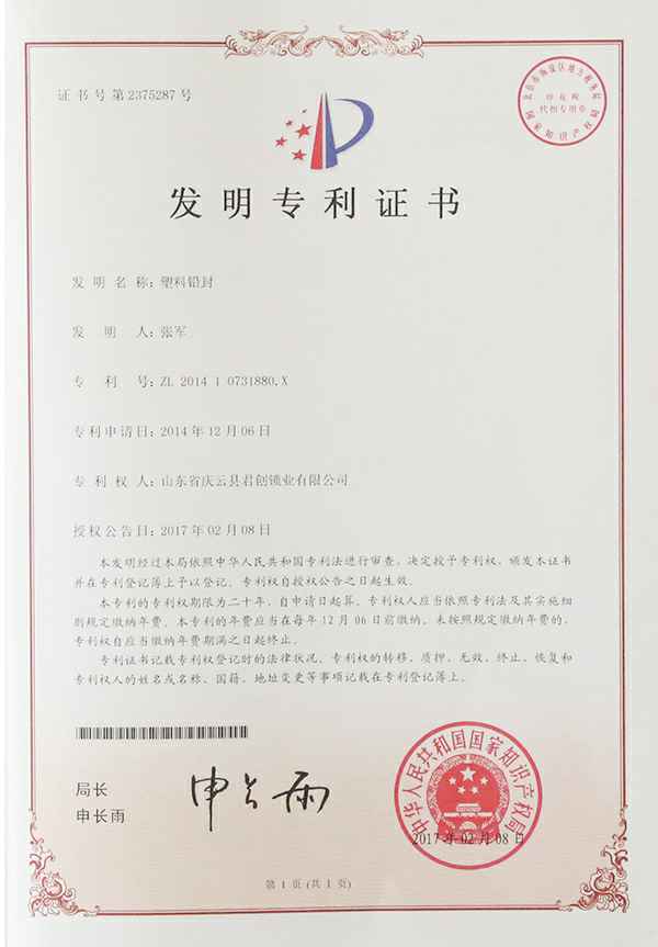 塑料铅封-发明专利